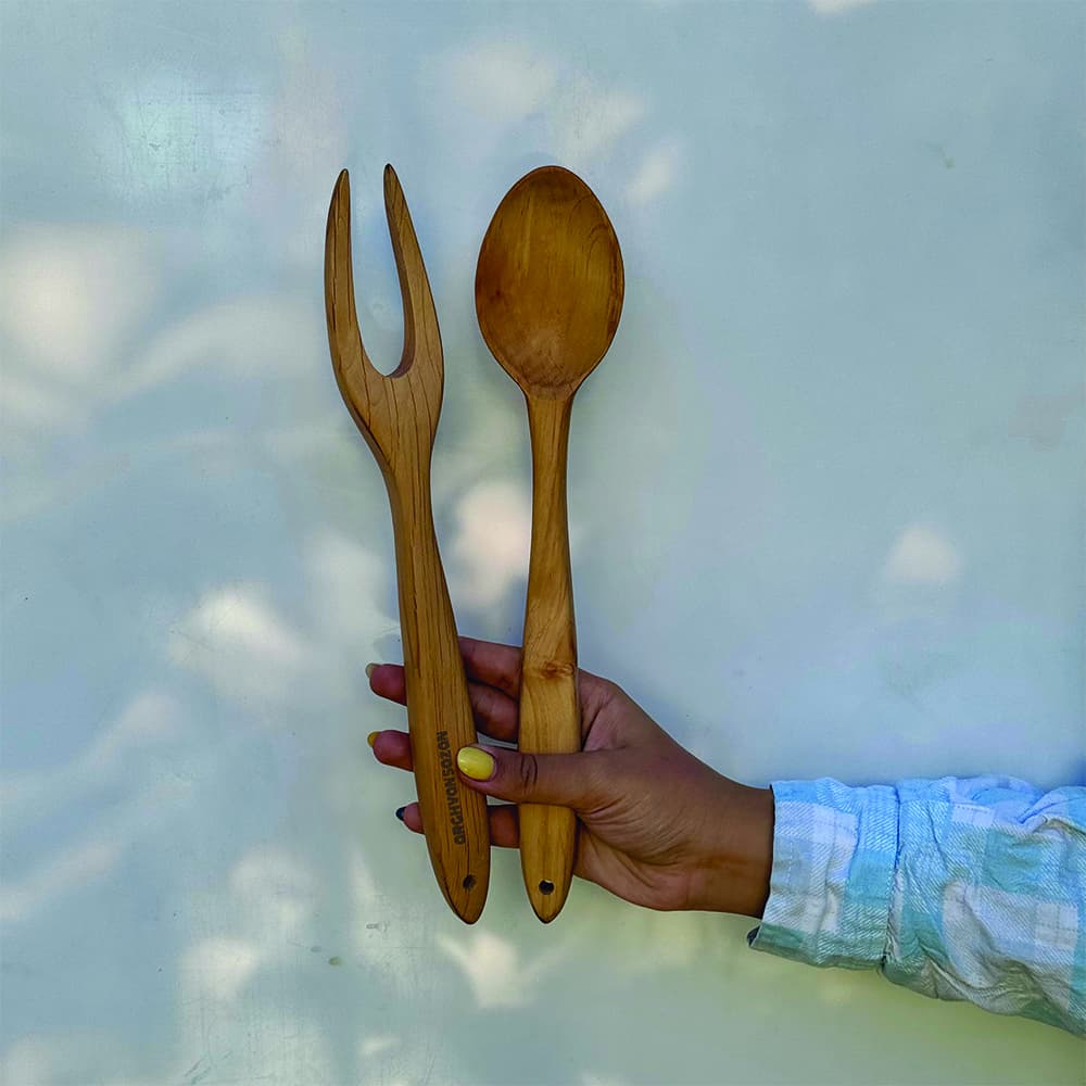 ست قاشق و چنگال «پخت و پز چوبی دلند» محصولی منحصربه‌فرد از صنایع دستی ارغوان‌سازان است. این ست زیبا و کاربردی، ترکیبی از هنر دست خراطان ایرانی و مرغوب‌ترین چوب‌های جنگلی است که برای آشپزی و سرو غذا طراحی شده است. نکته برجسته این محصول، پرداخت کاملاً طبیعی آن است؛ به‌طوری که هیچ‌گونه روغن یا ماده شیمیایی در مراحل صیقل و براق‌سازی به کار نرفته و تمام سطوح با سنباده‌های استاندارد صیقلی شده‌اند. بدین ترتیب تماس مستقیم با غذا کاملاً بی‌خطر و ارگانیک خواهد بود.